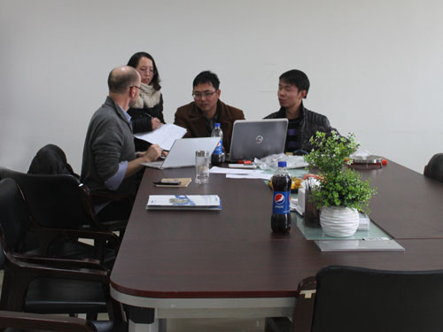 芝加哥客戶(hù)于2013年在我公司購(gòu)買(mǎi)一臺(tái)非標(biāo)夾層鍋,由于業(yè)務(wù)發(fā)展需要,2015年1月30日,該客戶(hù)再次來(lái)我公司,參觀工廠(chǎng)的實(shí)際生產(chǎn),并與銷(xiāo)售員和技術(shù)工程師進(jìn)行球形鍋具體細(xì)節(jié)的洽談。