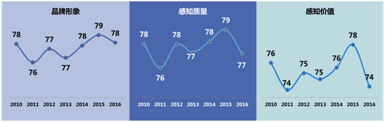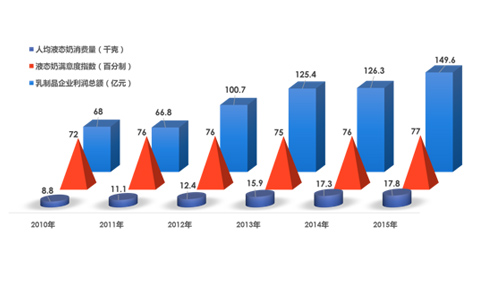一、2016年液態(tài)奶行業(yè)滿意度得分76分(滿分100分),比2015年降低1分。品牌形象、感知質(zhì)量和感知價值指數(shù)相比去年出現(xiàn)了不同程度的下降。從歷史數(shù)據(jù)上看,液態(tài)奶行業(yè)滿意度指數(shù)自2010年開始基本呈現(xiàn)調(diào)整上升的趨勢,與此同時,人均液態(tài)奶消費量和乳制品企業(yè)利潤總額均水漲船高。值得注意的是,2016年液態(tài)奶行業(yè)滿意度出現(xiàn)小幅下降,人均液態(tài)奶消費量的增速也在放緩,液態(tài)奶企業(yè)應(yīng)重視影響消費者滿意度的因素并掌握未來液態(tài)奶的消費需求動向,以此作為未來營銷方向的重點。